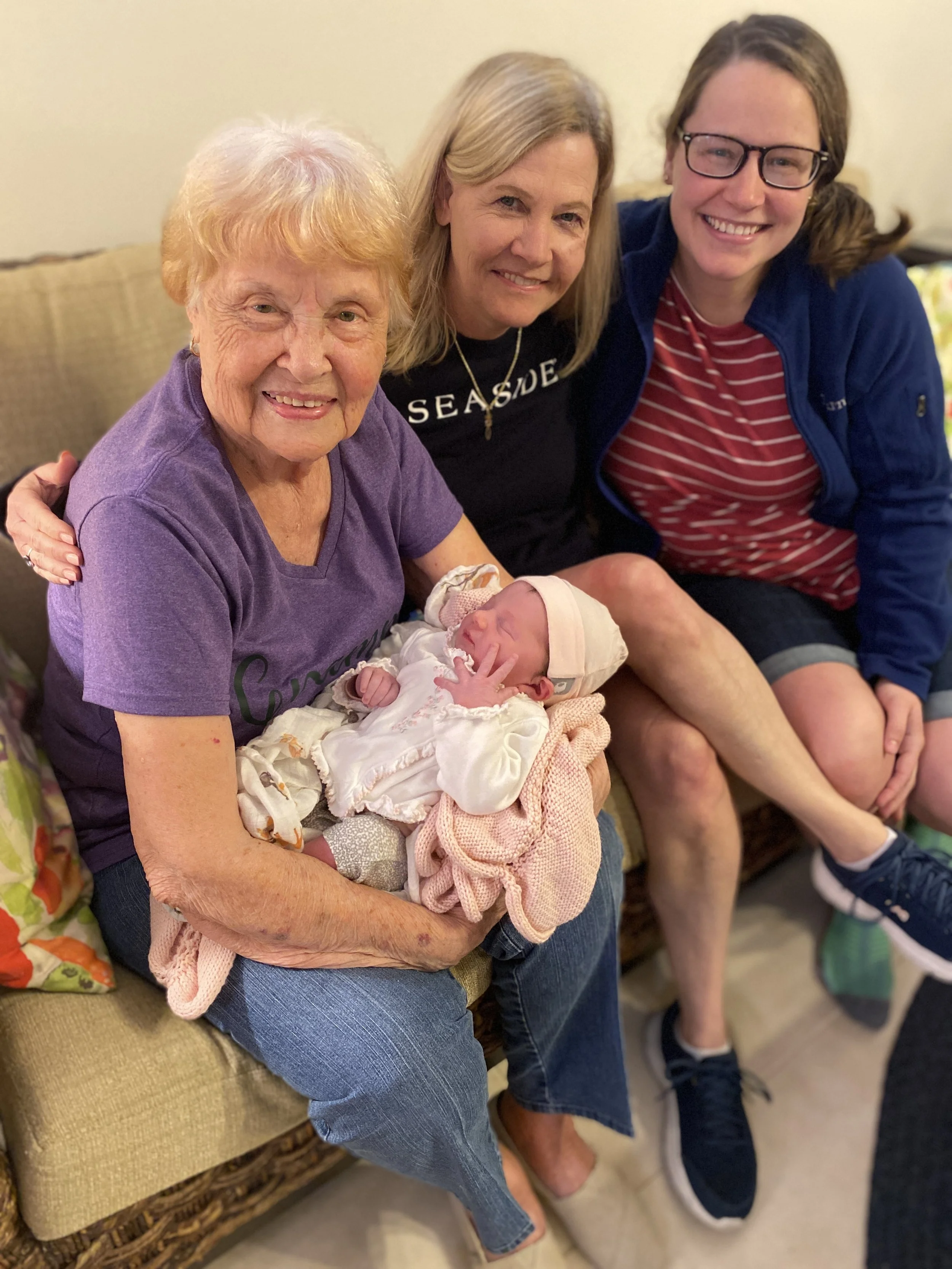 Four generations including Mum, Me, Mallory, and Baby Elizabeth Joy