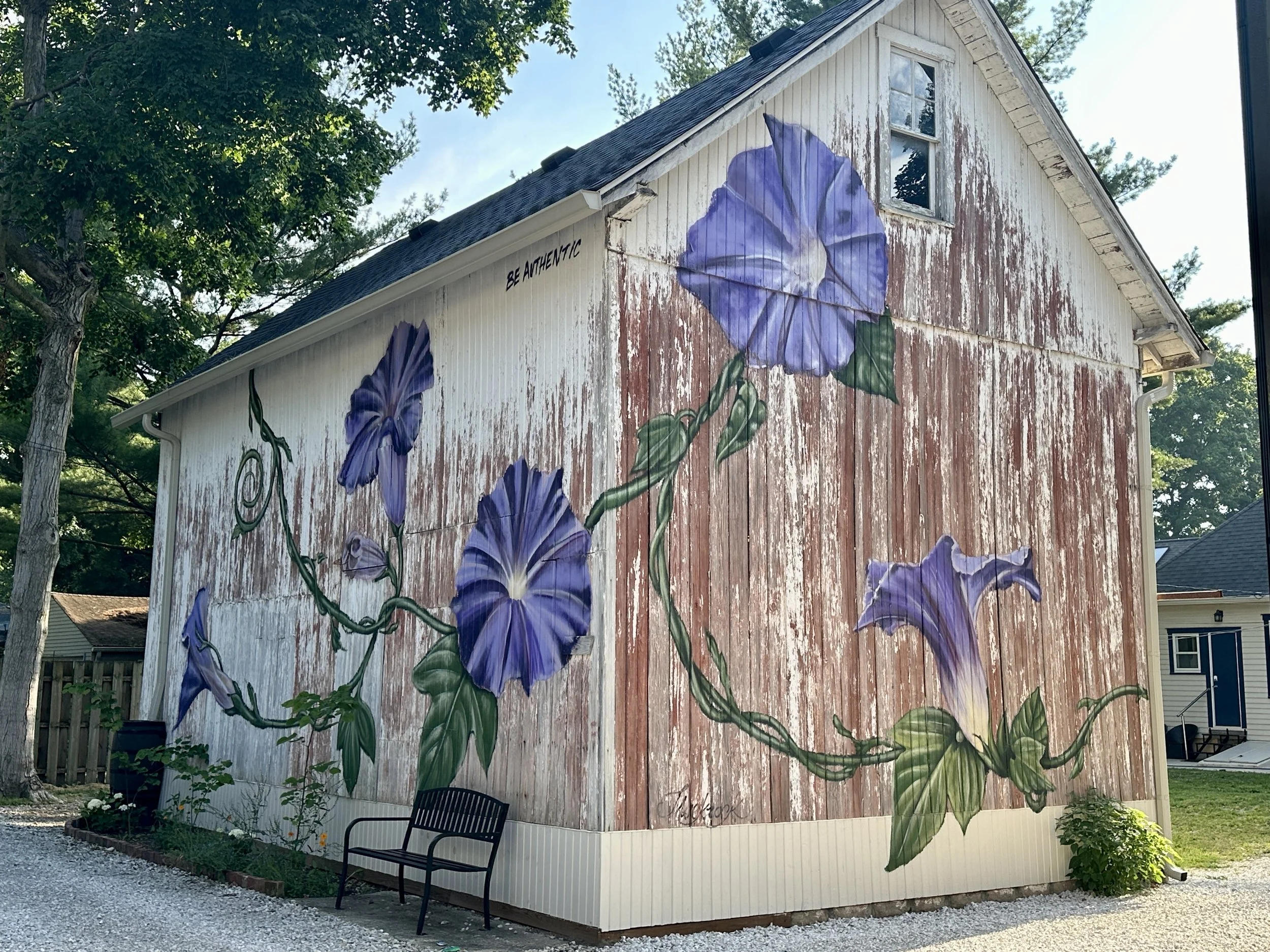 The conversation continued for miles about how beautiful the paintings were, the creativity and thought that birthed each one, and the uniqueness they contributed to what would have been an otherwise alley of boring garage doors. Perhaps the most meaningful thought was how this endeavor must have brought all the neighbors together. Not only would it have been a substantial financial commitment for each homeowner, but we imagined the conversations and collaboration it must have taken to decide whose door would convey which “Be” attitude, and which flower best conveyed each sentiment. (Be kind; Be celebrated; Be curious; Be active; Be peace; Be grateful; Be bold; Be love; Be remembered; Be the Change; Be joyful; Be unforgettable, etc.)